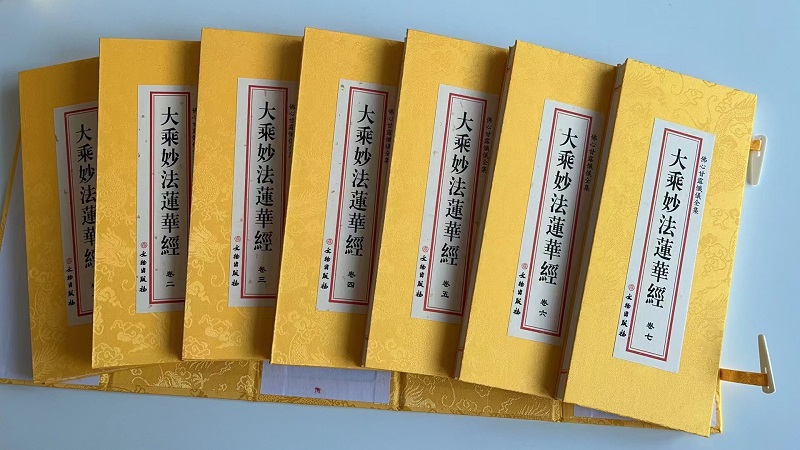 大乘妙法蓮華經 大折本(全七卷)綢緞面 豎排大字 共1294頁