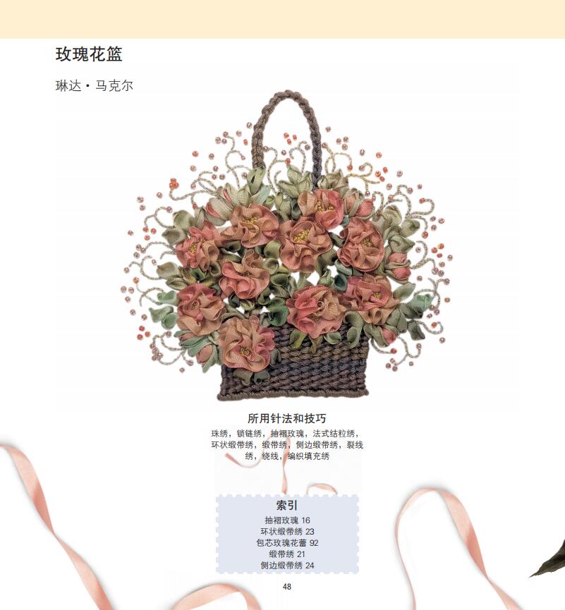 2.緞帶繡相關知識的完全指南,包括知識、技法、具體作品製作。