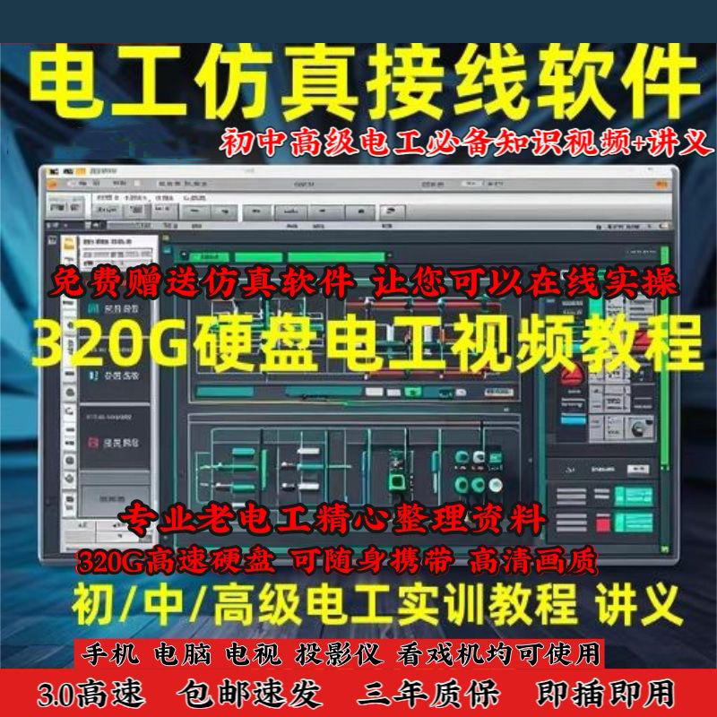 電工仿真軟件 電工實訓高清影片教程 移動硬盤320G(全套資料已錄製 免下載 即插即看)