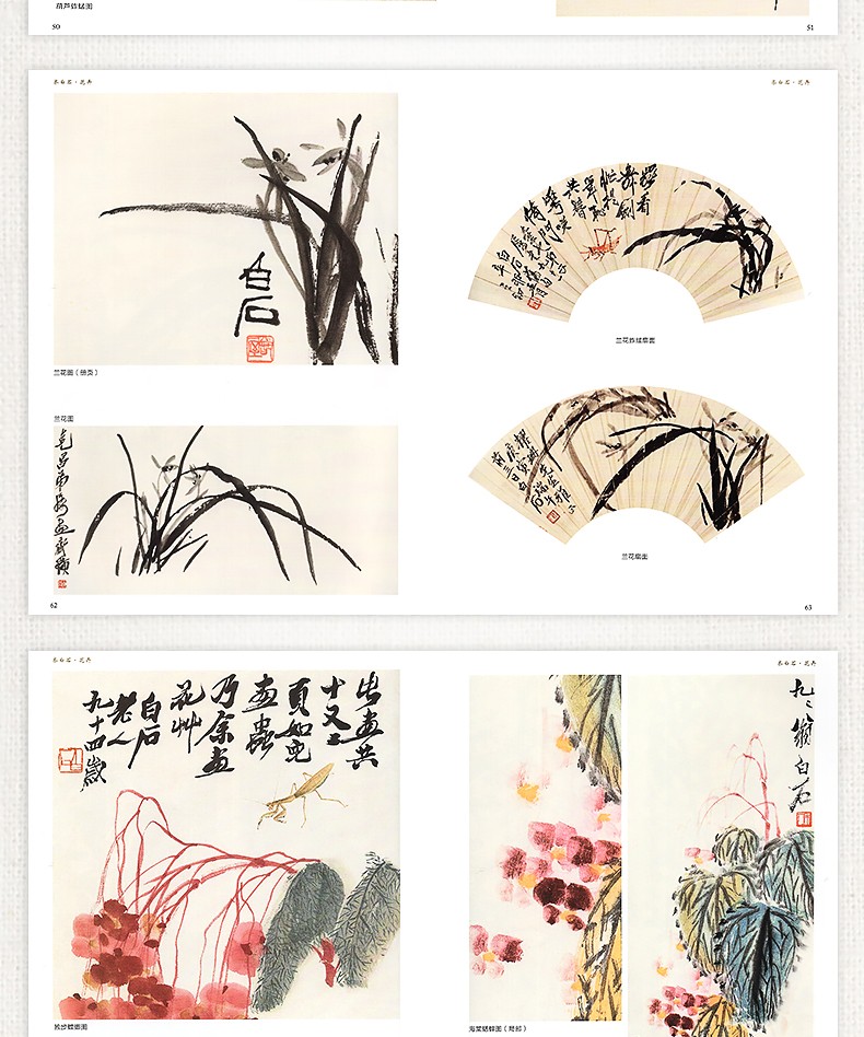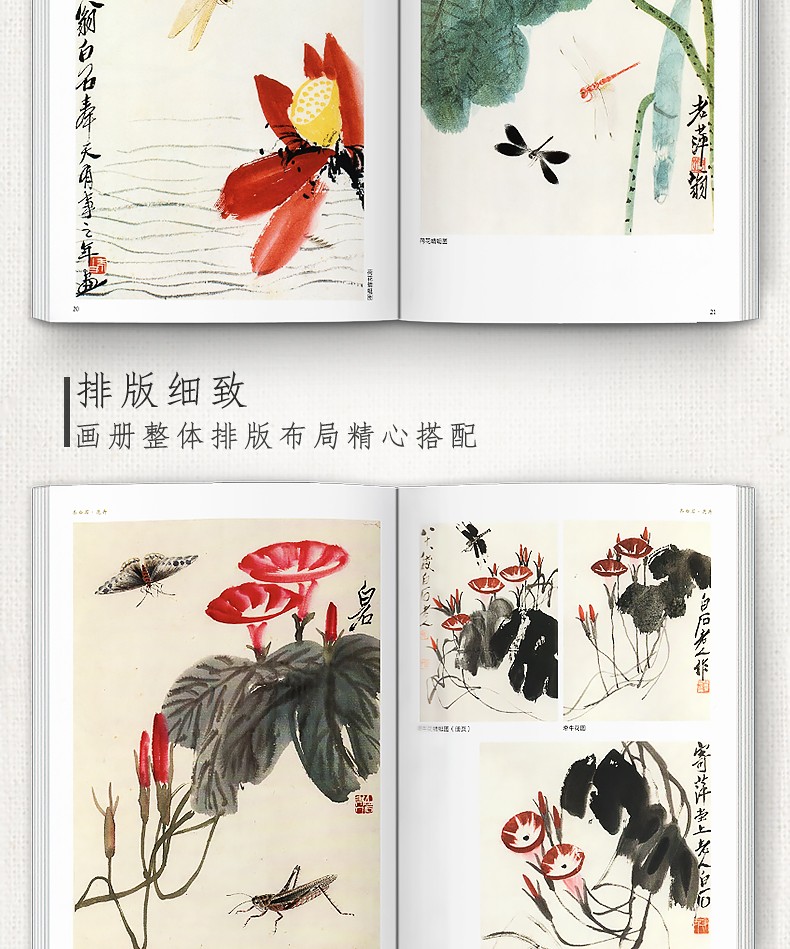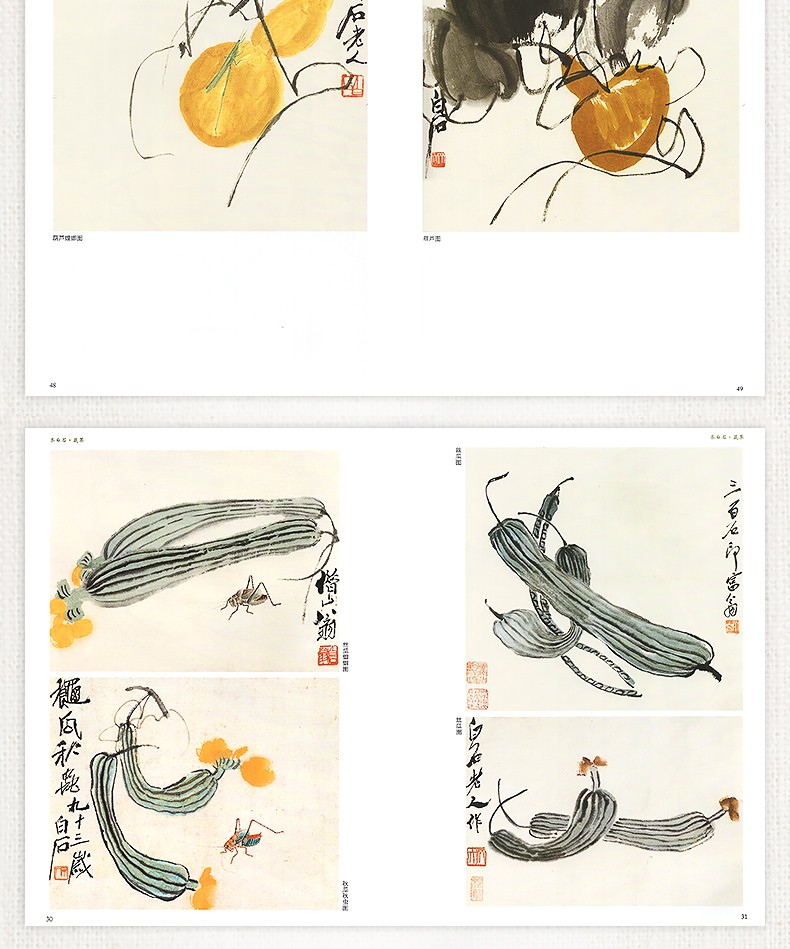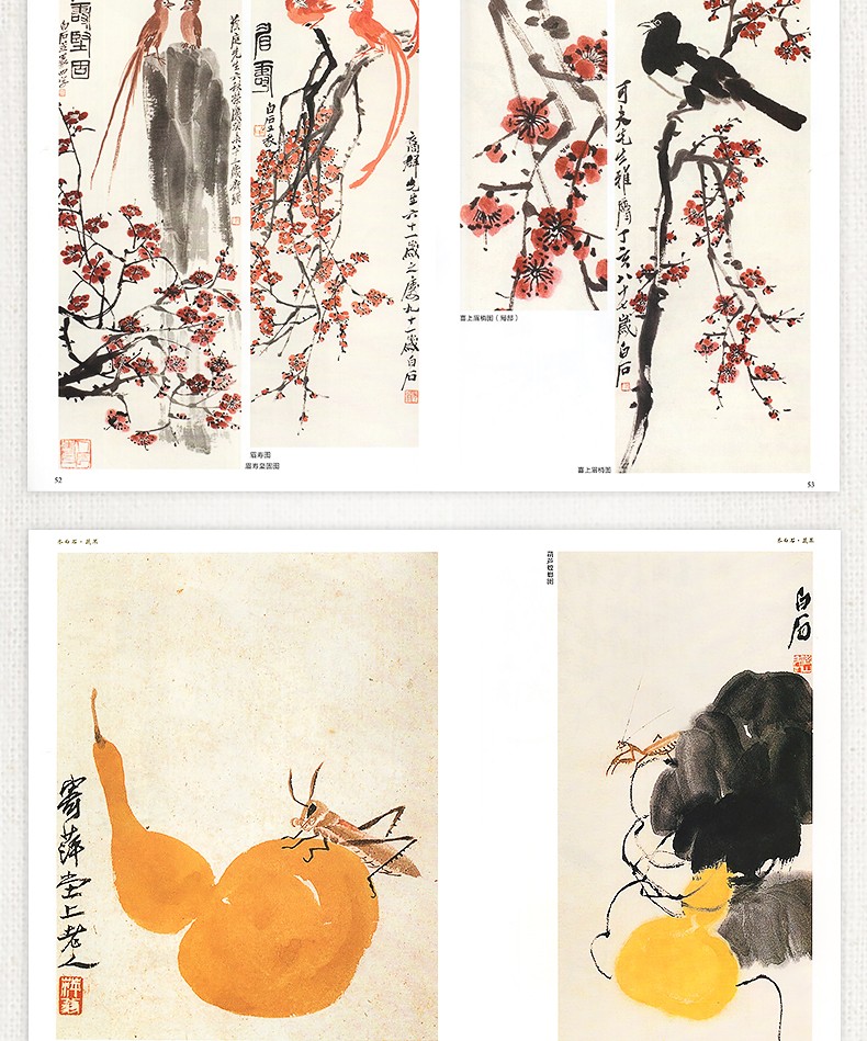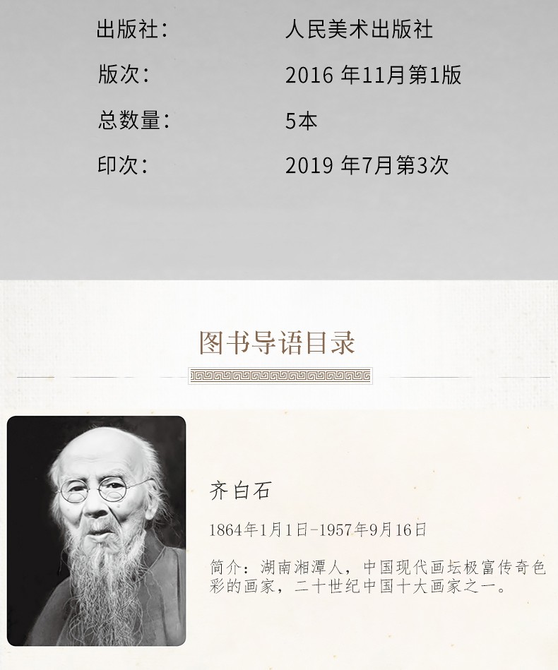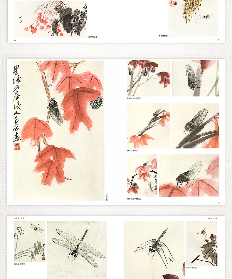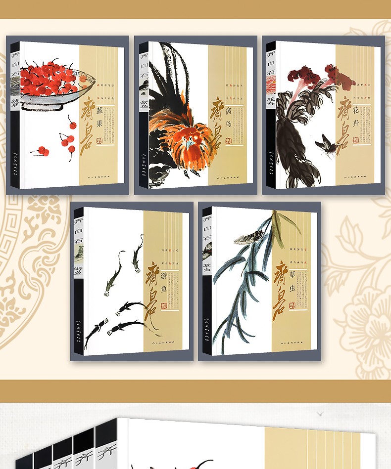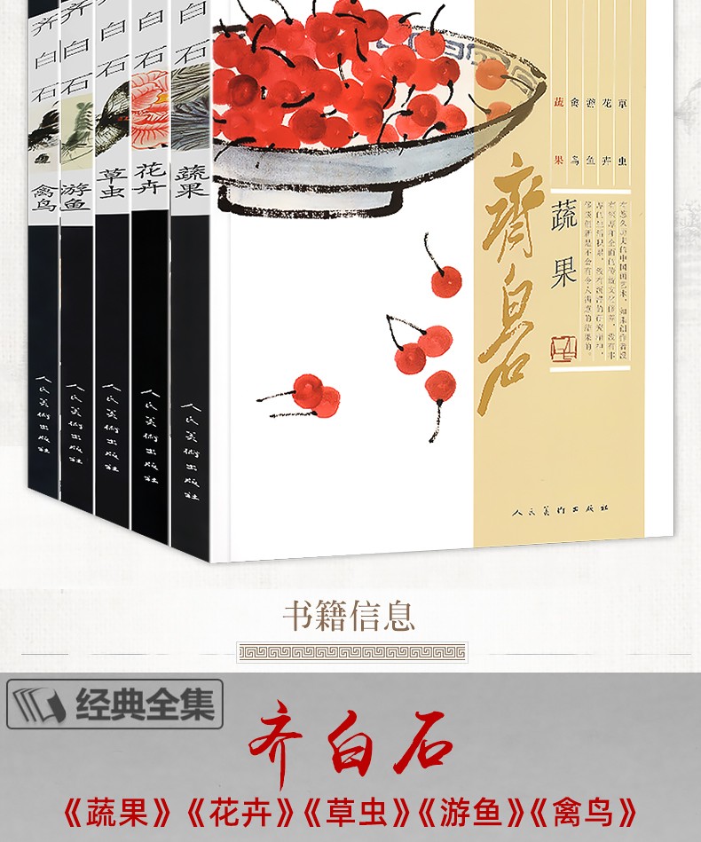 齊白石畫集5冊 游魚+蔬果+禽鳥+花卉+草蟲