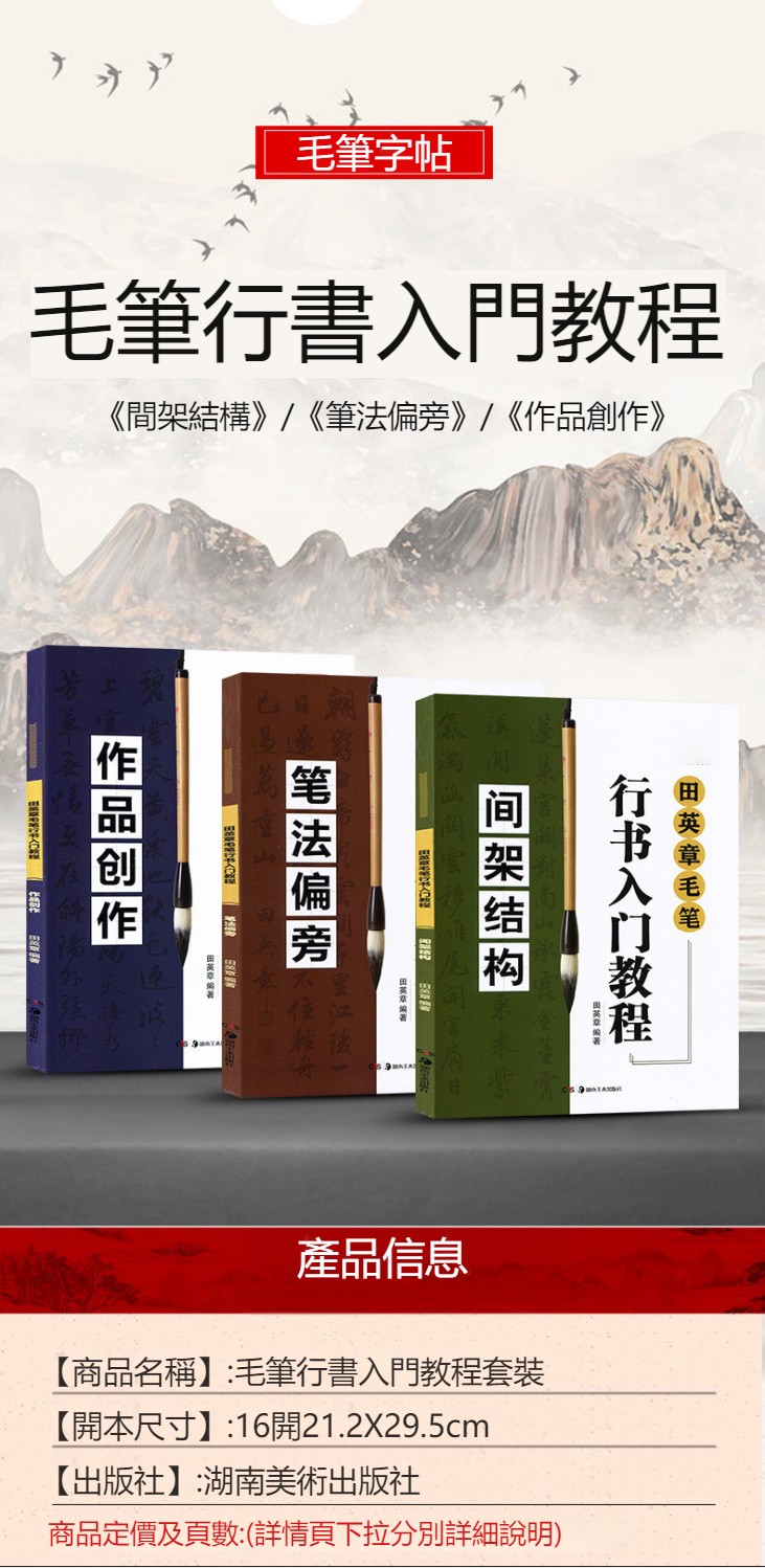 田英章毛筆行書入門教程 間架結構+筆法偏旁+作品創作 3冊 NT$990