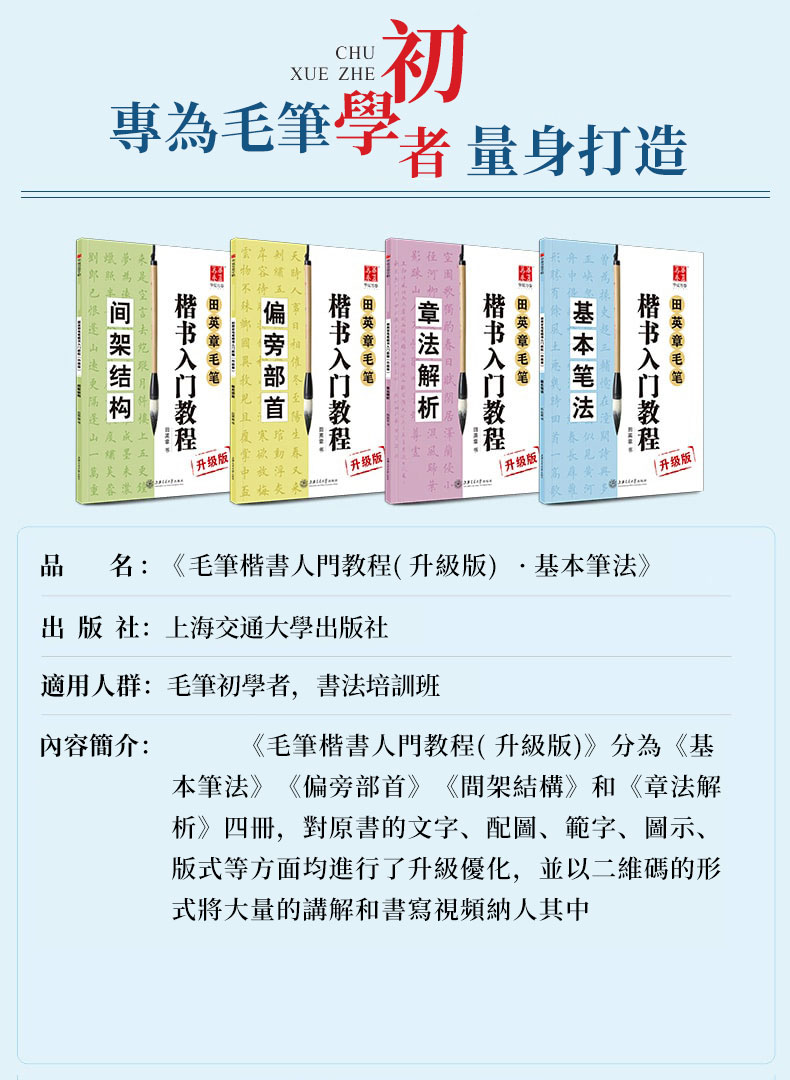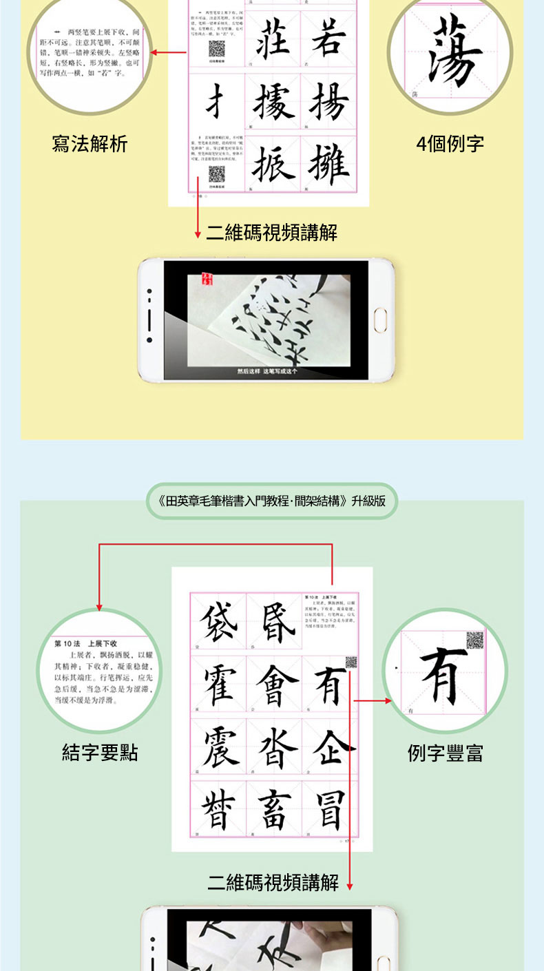 【贈視頻教程+毛筆+水寫佈+水碟】4本裝 田英章毛筆楷書入門教程 基本筆法+偏旁部首+間架結構+章法解析 NT$1285
