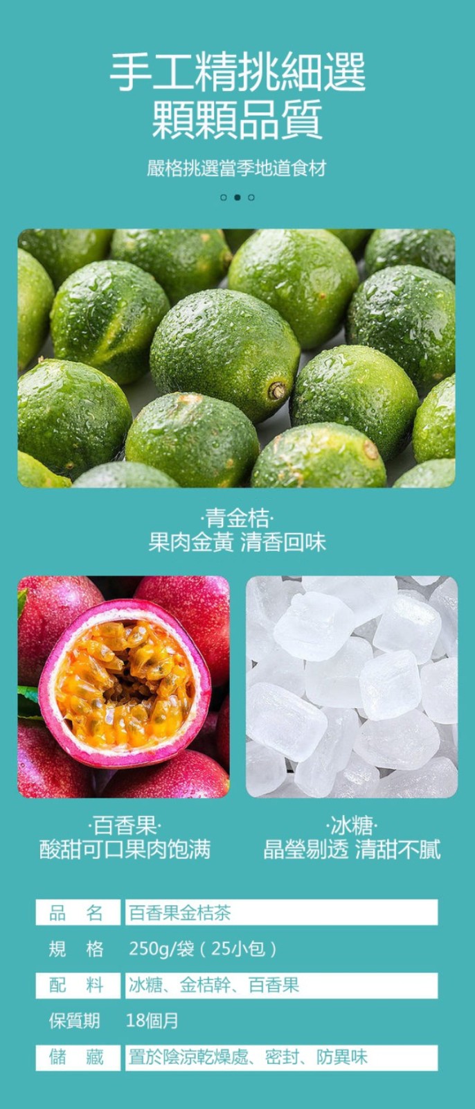 【買1送1共50包再送玻璃杯】小青金桔百香果茶,維C茶,純水果乾水果茶,冷泡/熱泡,美白,增強抵抗力,生津止渴,好開胃【買1送1共50包再送玻璃杯】