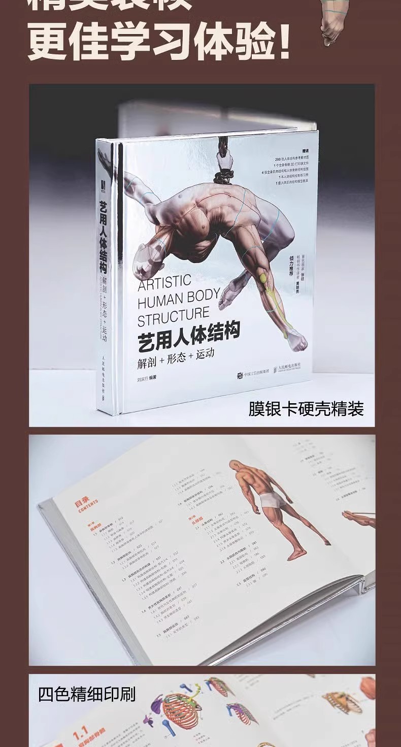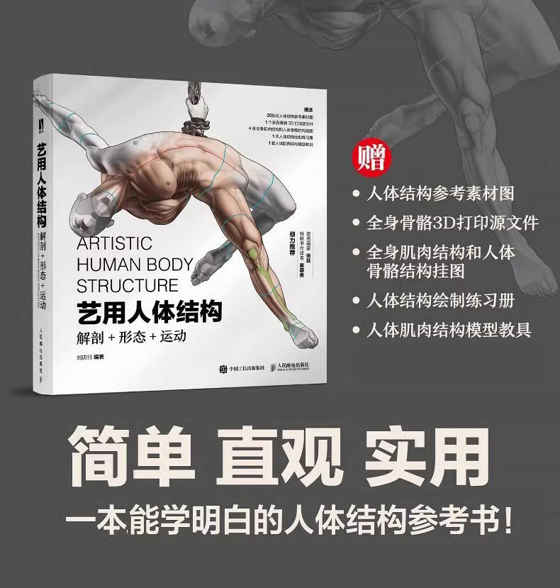 本書從解剖、形態、運動三方面系統、詳細且深入解析了人體結構的造型特徵及運動原理,剖析了複雜的人體結構與靈活多變的人體動態。書中的解剖部分對結構的造型特徵與相互間的位置關係進行分析講解,使讀者更加準確地理解人體構造,深入掌握人體結構及運動規律,並且能夠靈活運用。本書也講解了性徵差別、同一結構的個體差異,以及脂肪對人體形態的影響等容易被忽略的要點。希望讀者在學習人體繪畫時,不僅可以掌握骨骼結構與肌肉結構,還能從更多方面深入理解人體的造型結構,以便在繪畫中做到應對自如、得心應手。本書附贈全身骨骼模型3D列印源文件、高清人體結構參考材料圖等電子資源,以及大尺寸全身肌肉結構和人體骨骼結構掛圖、人體結構繪製練習冊、人體肌肉結構模型教具等實體學習輔助資源,以滿足讀者多方面的學習需求。本書適合作為設計師、插畫家等相關設計方向從業人員的工具書,也可作為高等院校藝術專業師生、藝考生的參考書。