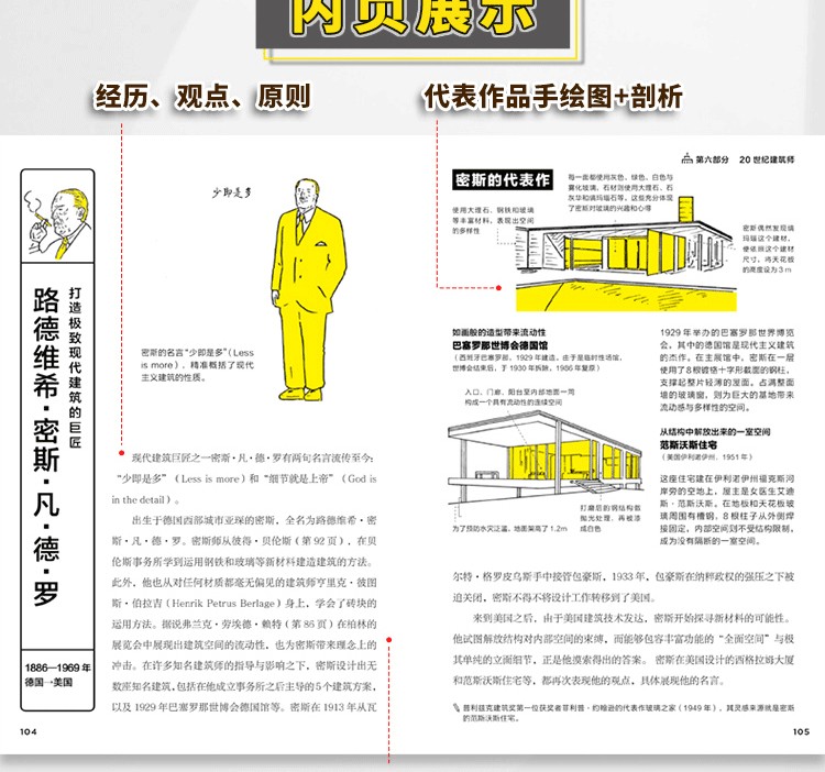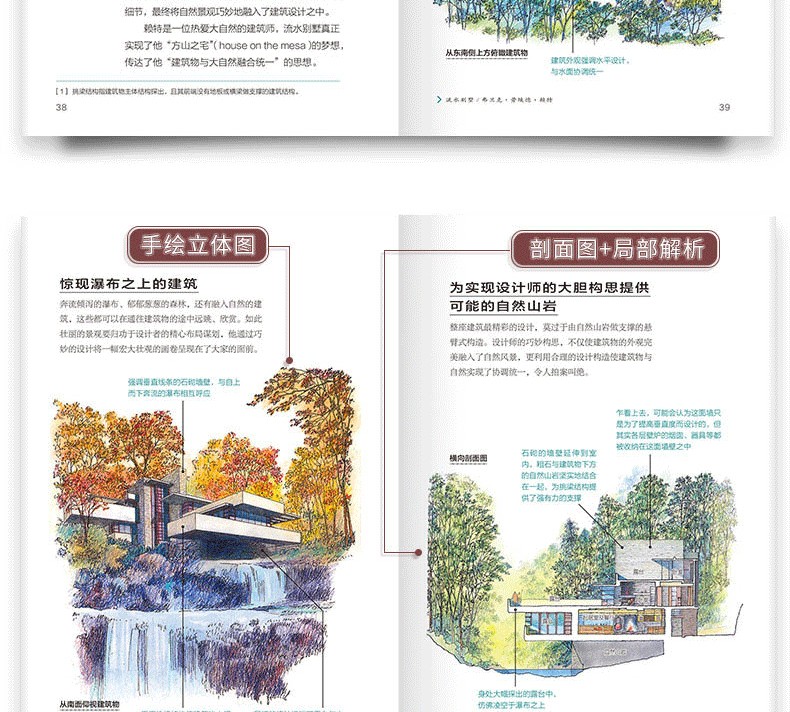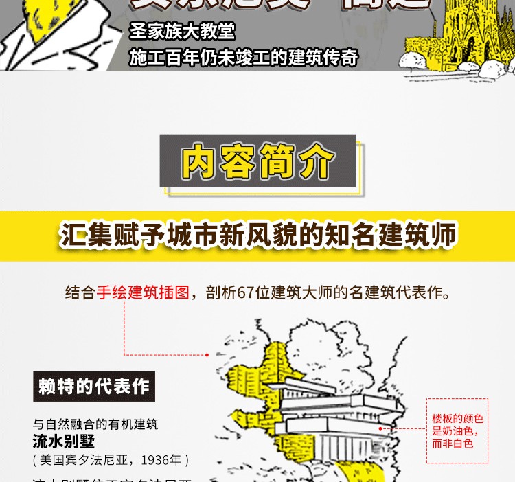 本書介紹了60多座世界著ming的住宅建築,包括31座掀起世界變革的住宅建築、15座日本經典住宅,以及9種紮根當地環境的住宅,卷末集錦則介紹了日本建築發展歷程中11種建築的由來。此外,本書的建築家專欄收錄了22位建築大師的簡要介紹。書中先對住宅進行總體介紹,然後分別就其具體的設計精彩之處進行解析,還搭配了平面圖,分析住宅內部格局的佈置,以供讀者參考。本書圖片採用手繪形式,圖文精美,文字精煉,可閱讀性較強。通過圖文對照,讀者不但可以看得見此住宅的內外設計,還可以感受到居住在其中的人文生活。