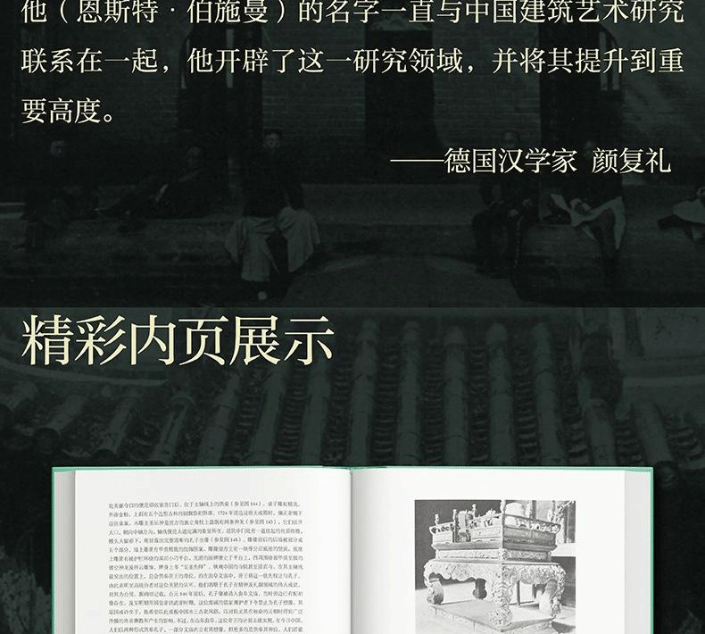 恩斯特·伯施曼(Ernst Boerschmann,1873-1949),德國皇家柏林工業高等學院(柏林工業大學前身)教授,中國建築攝影鼻祖,全面考察和記錄中國古代建築的第一人。 1906年至1909年間,在德意志帝國皇家基金會的支持下,伯施曼跨越14省,行程數万裡,對中國的皇家建築、寺廟、祠堂、民居等進行了全方位的考察,留下了8000張照片、2500張草圖、2000張拓片和1000頁測繪記錄。 1932年,伯施曼受邀成為中國營造學社的通訊研究員。 1933年至1935年間,被特聘為中國傳統建築遺產顧問。出版有《中國建築》《中國祠堂》《塔》《普陀山》等作品。