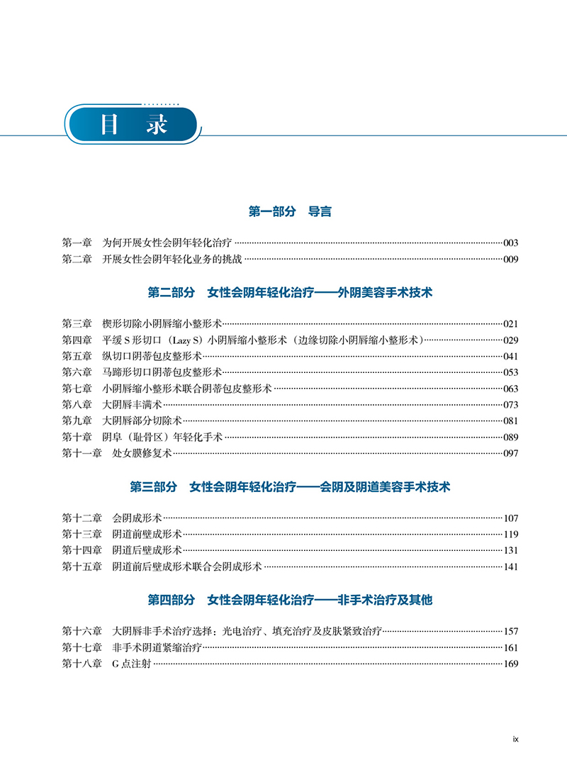 主編:(哥倫)利納·特里亞納(Lina Triana)南美有名私密整形專家。主譯:朱琳,女,醫學博士,北京協和醫院整形美容外科副教授,碩士生導師。 2003年畢業於山東大學醫學院,同年進入北京協和醫院外科工作,2014年獲得北京協和醫學院整形外科博士學位,同年獲國家留學基金委資助,赴美國Mayo醫學中心,進行1年的Fellow培訓。張蔚宣,北京畫美醫療美容醫院私密中心,院長。 蔣亦2004 -至今從事生殖抗衰整形以及性病皮膚病治療。從事醫療美容微創整形、皮膚抗衰、生殖抗衰、電光能量光纖激光物理美容、皮膚病與性病等專業臨床教學及科研工作40年。