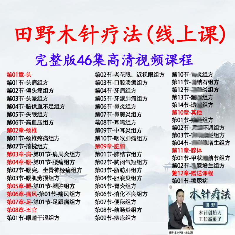 田野 木針療法(1冊)+田野木針療法完整版46集高清影片課程(32G U盤出貨 免下載 即插即看)