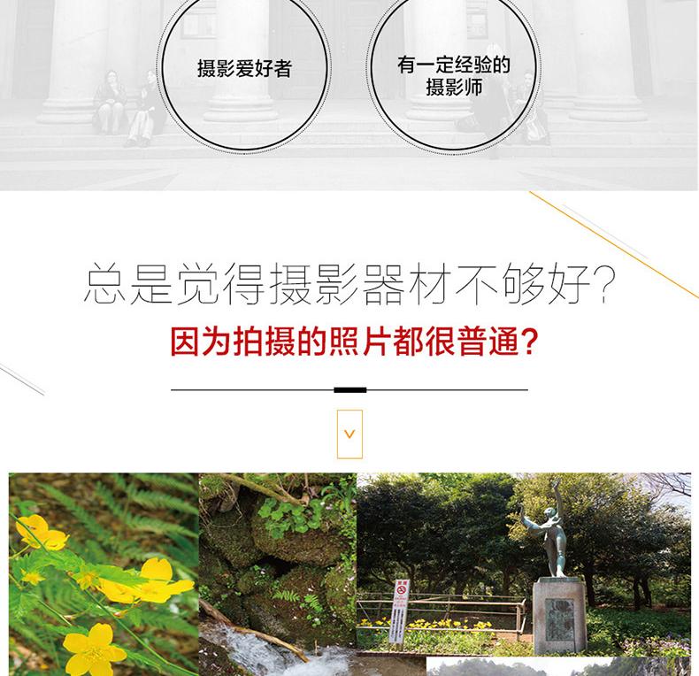 自然風景、人物、動物、街拍等主題實戰構圖技巧講解,讓你真正應用在自己的攝影作品上。