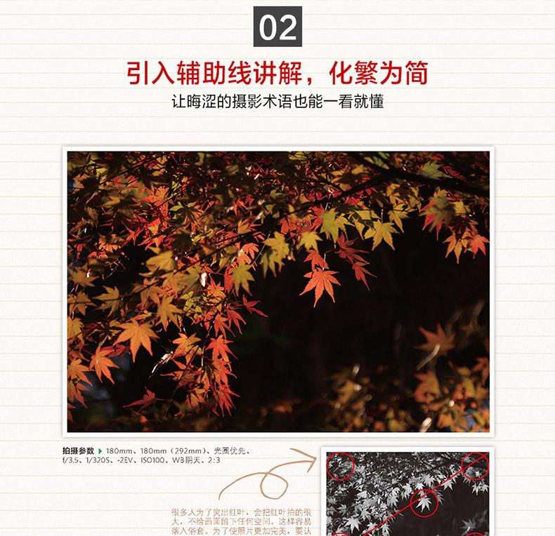 引入輔助線講解,化繁為簡,讓晦澀的攝影術語也能一看就懂;