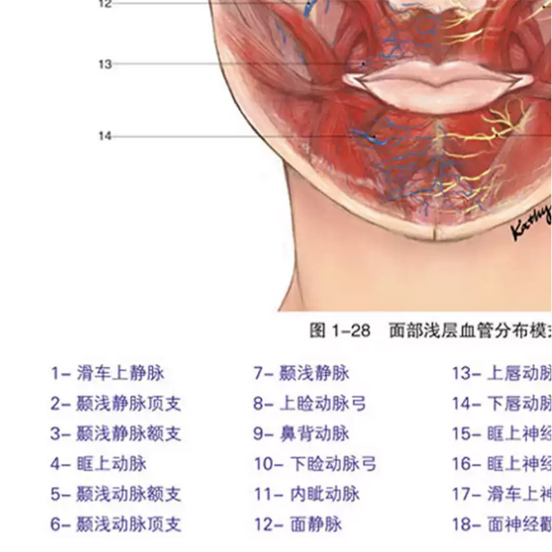 《面部精準注射解剖圖譜》是一本內容詳盡、標本層次結構清晰的實物圖譜。本書首先通過新鮮標本的動、靜脈灌注後,根據微注射的臨床需求在面部分部位進行了逐層解剖,拍攝了大量視角獨特的實用的實物照片,並且本書還利用血管鑄型技術、三維重建技術等獲得了面部動脈和靜脈分佈的全貌。 P45斷層塑化技術是的斷層標本製作技術,本書應用該技術清晰的顯示了面部的層次,尤其是完整的展示了SMAS層。同時本書繪製了精美的標本示意圖,使晦澀難懂的部分更加清晰。該書從籌備到完稿歷時1年半,*終精選照片、圖片240餘幅,圖譜內容詳實、圖片清晰、圖解充分,編排細緻,力求全面呈現面部的解剖層次和血管分佈,從而為面部微注射技術有效地提供解剖基礎。希望本書能夠成為廣大醫學生、醫學美容教育工作者和醫學美容臨床醫生的得力助手。