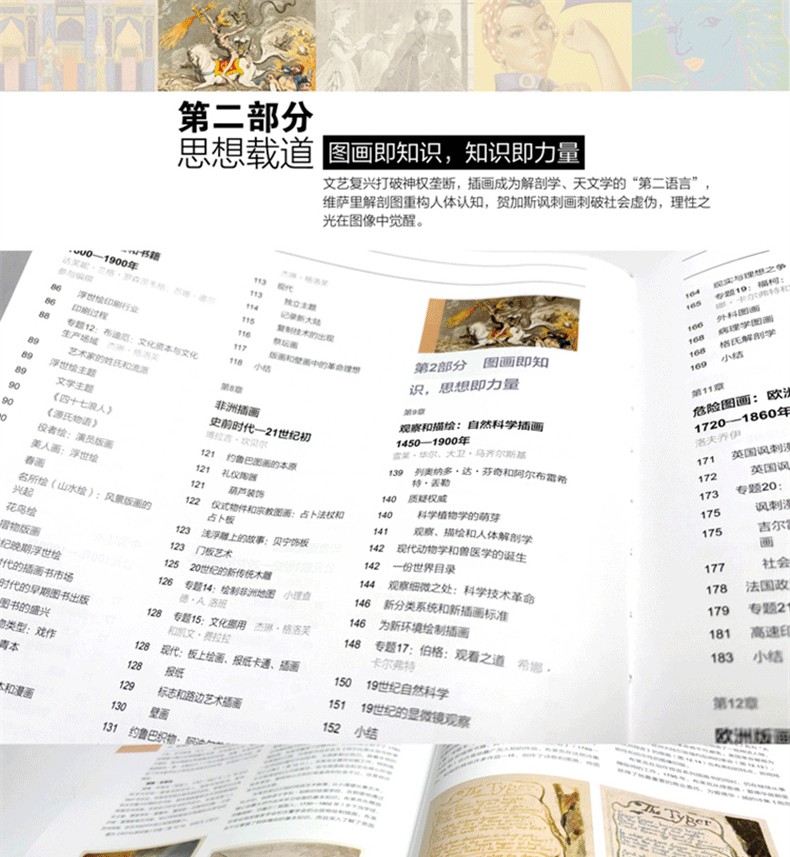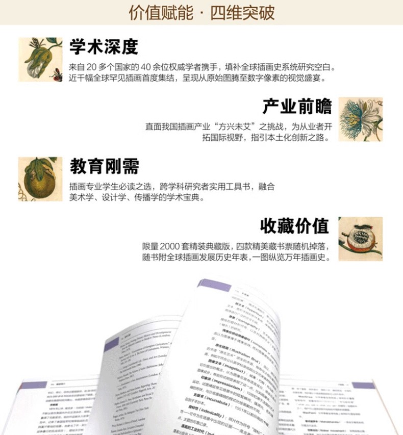 本書以全球視野為經,以歷史脈絡為緯,系統梳理插畫從遠古岩畫到數位藝術的演進歷程,透過五大部分:插畫起源與地域特色、文藝復興後的知識傳播、大眾媒體時代的商業應用、20世紀的多元繁榮、數位時代的全球融合,全景展現世界各國的插畫傳統與發展軌跡,既是百科全書式的插畫通史,也是插畫從業人員、研究者不可或缺的案頭工具書。