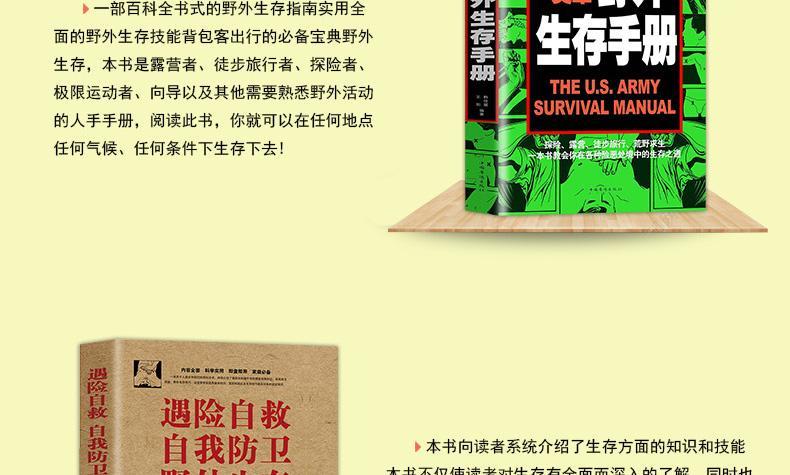 美軍野外生存手冊+遇險自救+戶外生存手冊自我防衛野外(全3冊)