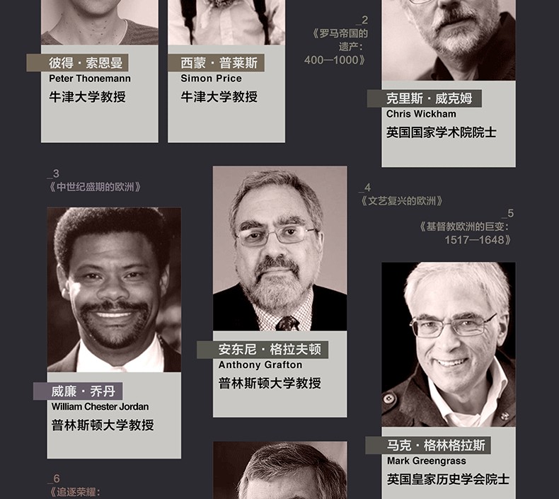北京大學歷史學系彭小瑜教授、浙江大學呂一民教授、復旦大學李宏圖教授、南京大學陳曉律教授、北京師範大學劉林海教授……為《企鵝歐洲史》系列各卷撰寫導讀推薦,引讀者進入歐洲史的宏大世界。