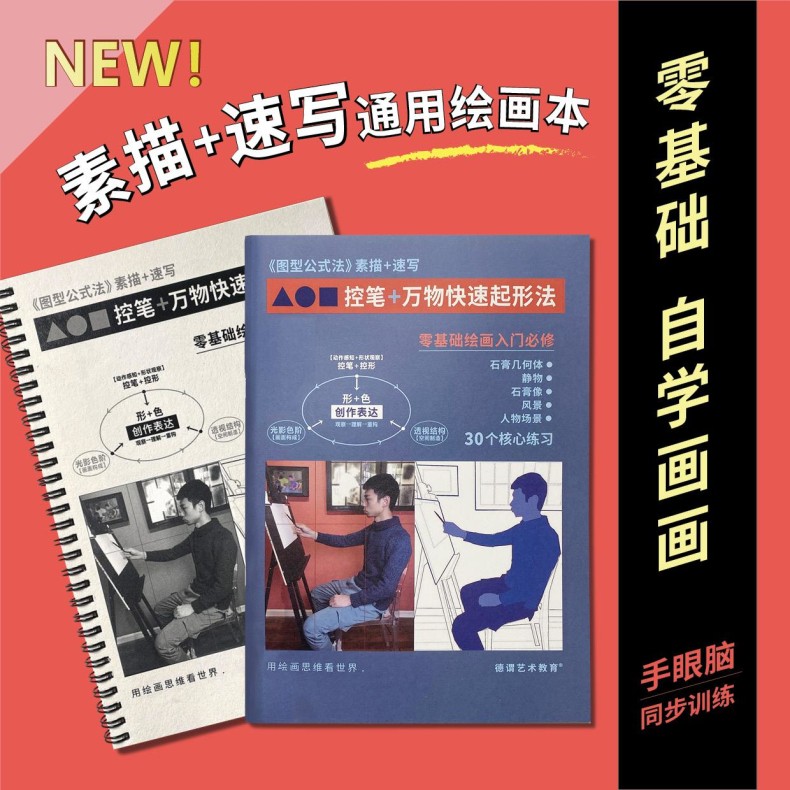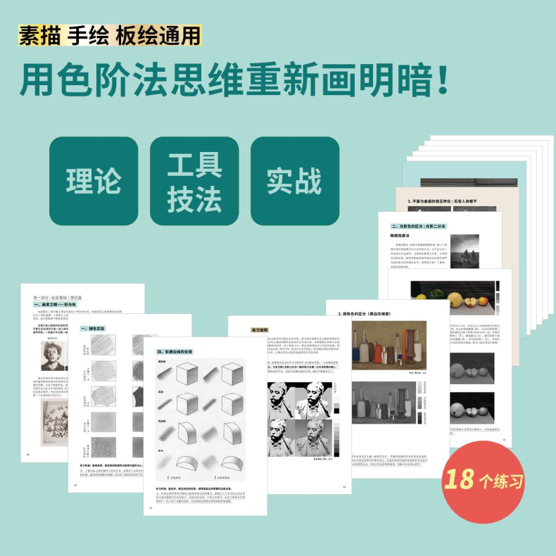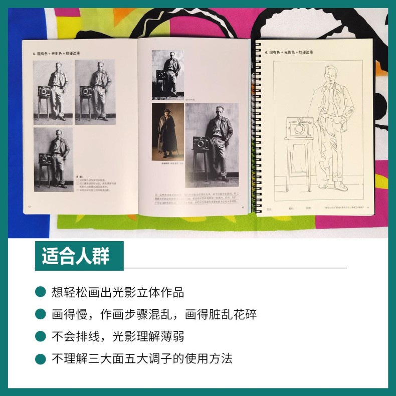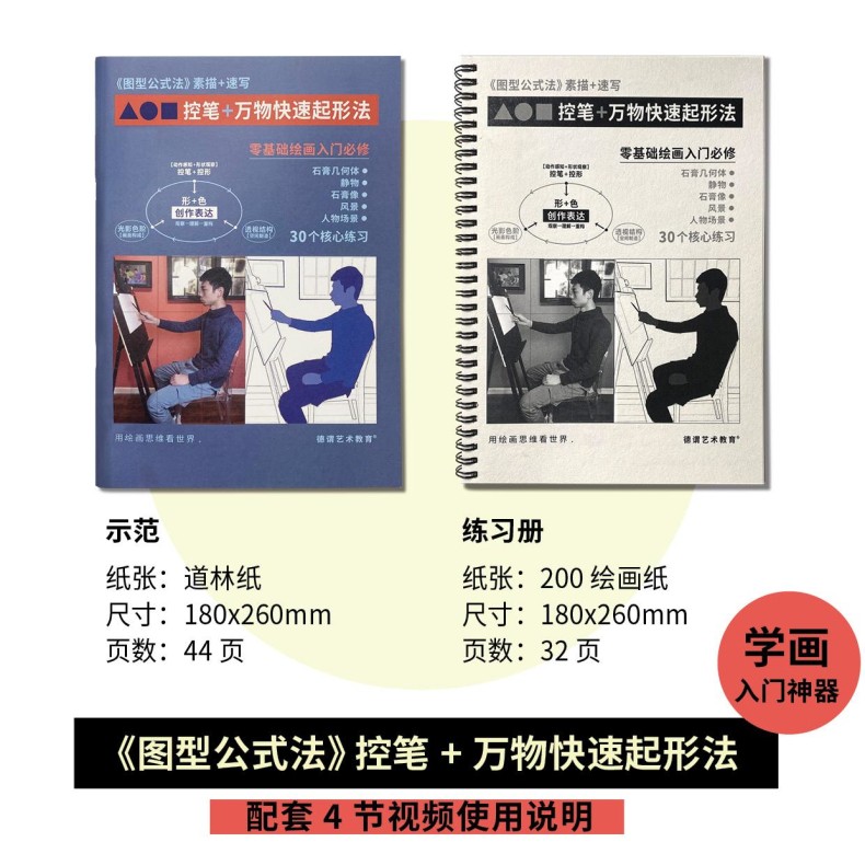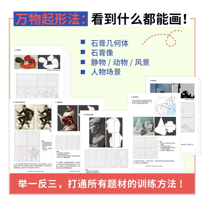 控筆萬物起形法+練習冊+素描光影色階法+練習冊(共4冊)直接畫臨摹本,光影素描本,繪畫教程書籍