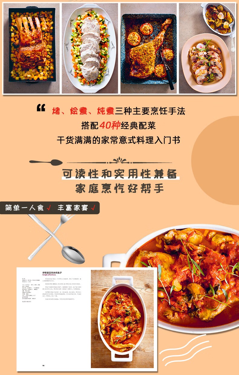 本書食譜經過再次篩選和編輯,從適合家庭烹飪的烤、燴煮和燉煮三種主要烹飪手法入手,食材覆蓋豬肉、牛肉、小牛肉、羊肉、家禽及各類風味選擇,搭配健康低脂的40種配菜,能夠滿足從簡單一人食到豐富家宴的各類烹飪需求。操作流程清晰且不乏細節,經專家團隊反覆試驗確認,食材及用量健康合理,烹飪新人也能輕鬆上手。