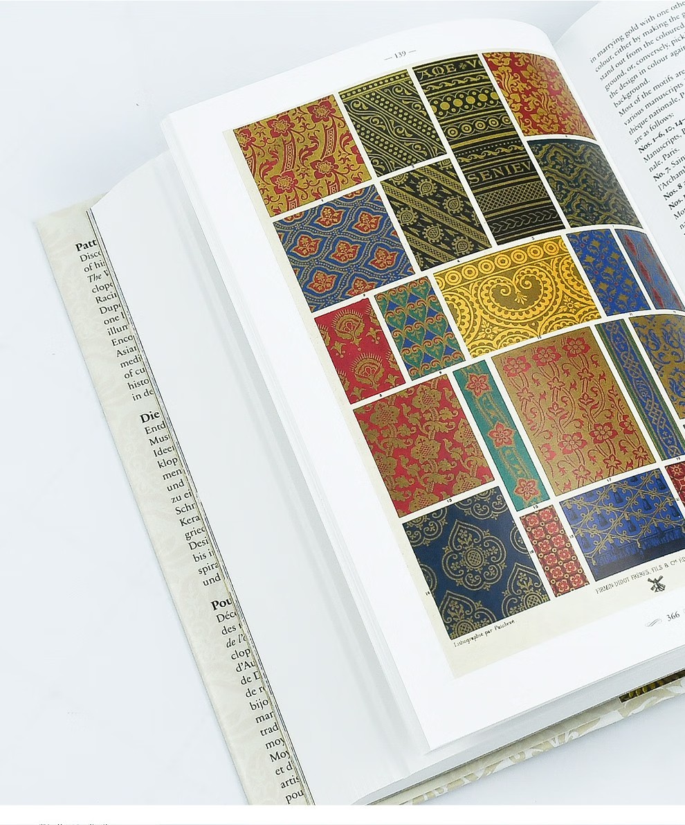 透過這本歷史上最優雅的圖案和裝飾設計的概要,探索裝飾思想的世界。 Racinet的《裝飾》彩色卷I 和II 和奧古斯特·杜邦-奧伯維爾的《組織裝飾》提供了一本內容豐富的資料書,內容涵蓋珠寶、瓷磚、彩色玻璃、彩繪手稿、紡織品和陶瓷裝飾品。