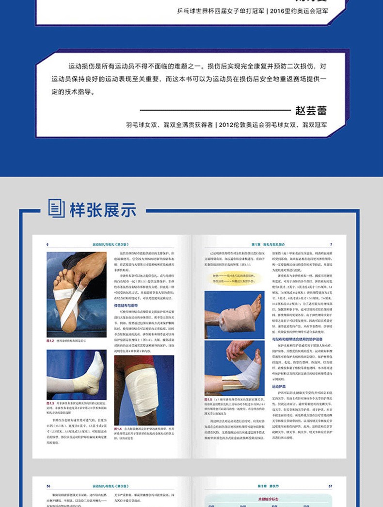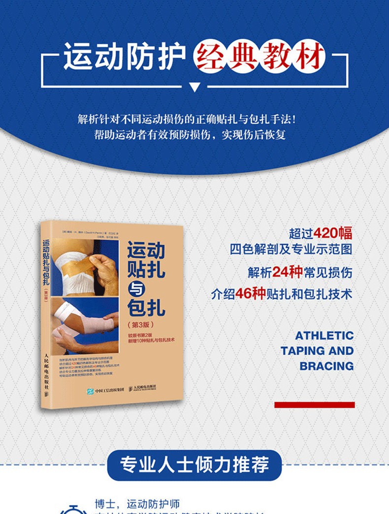 本書首先介紹了貼紮與包紮的解剖學基礎、角色和準備工作等內容。接著結合超過420幅真人示範照片,對足部、踝關節、小腿、膝關節、大腿、髖部、骨盆、肩部、上臂、肘關節、前臂、腕關節和手部的25種常見運動傷害的貼紮與包紮技術進行了分步講解。此外,本書介紹了針對各種損傷的肌力及伸展訓練,旨在幫助教練、防護師、治療師、隊醫等正確應用運動貼紮與包紮技術,幫助運動者實現傷後恢復以及避免傷害再次發生。