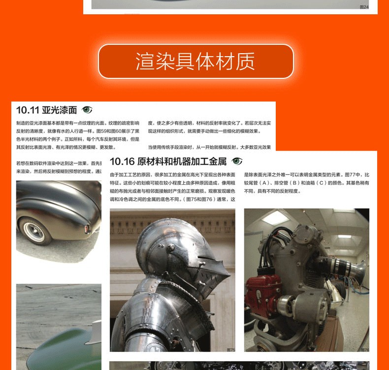 本書共分為11個章節,內容主要涵蓋兩方面。一是介紹光和影的物理現象。你將學到如何構建視覺上的陰影,以及如何描繪這些暗部的正確明暗關係。二是重點關注反射現象,以及如何運用反射知識渲染不同的材質。